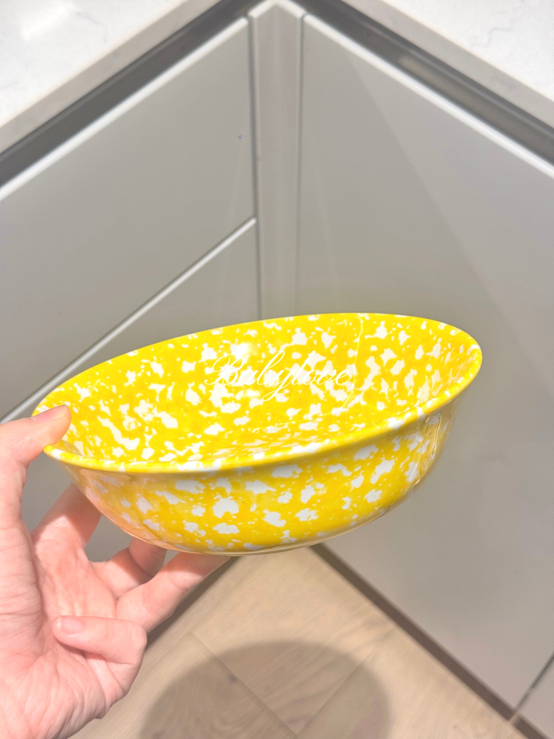 Bring a pop of color and Korean café vibes to your dining table with this bright yellow speckled noodle bowl. Its generous size makes it perfect for ramen, jjajangmyeon, tteokbokki, or any hearty noodle dish. The vibrant yellow glaze with white splatter pattern adds a cheerful touch, making every meal feel special.