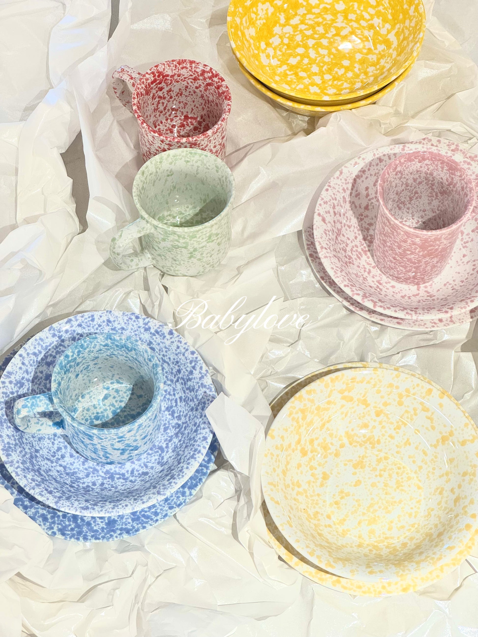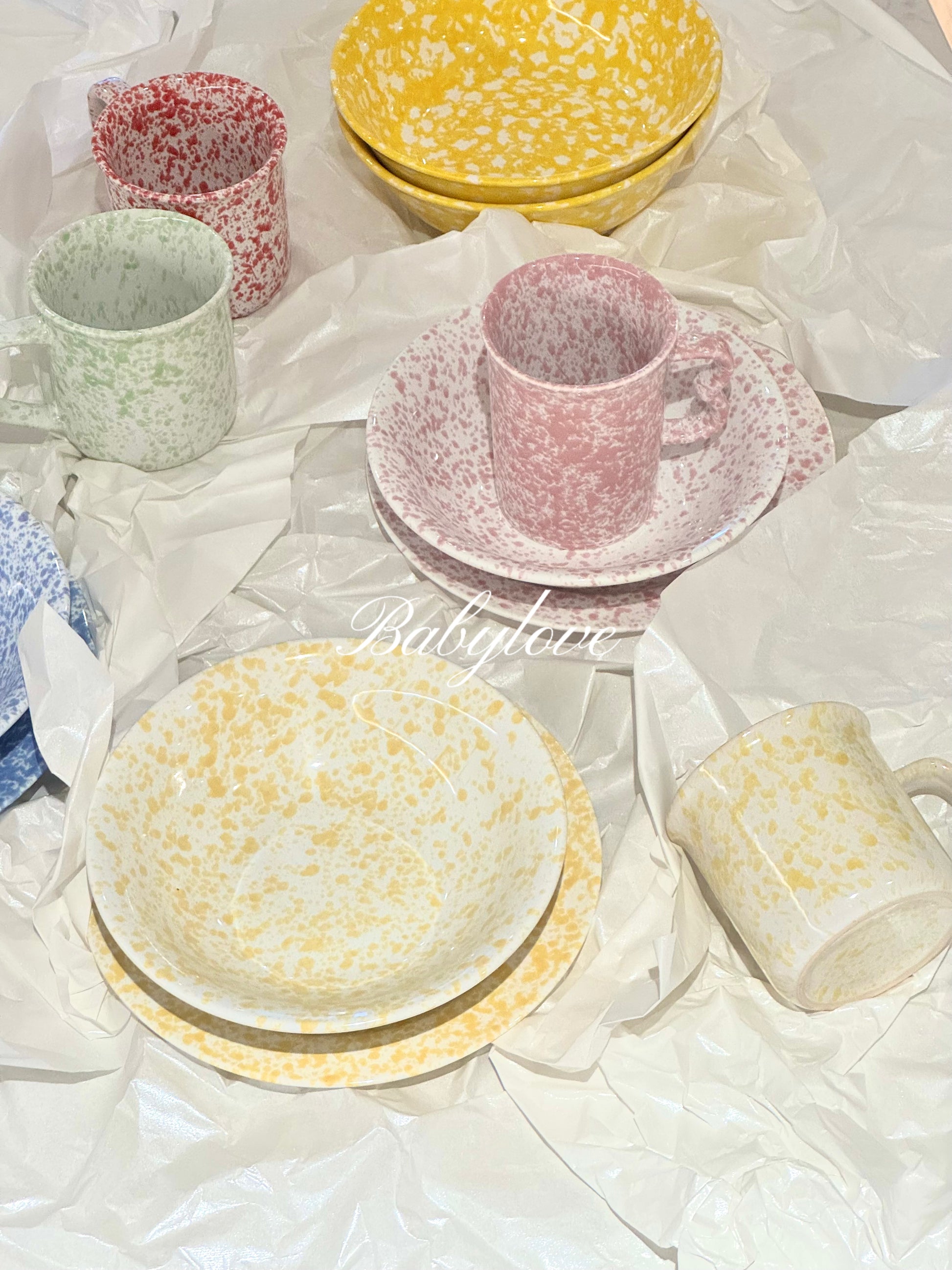 Bring a fresh and modern aesthetic to your dining table with this Korean-inspired splatter ceramic tableware. Each piece features a unique, hand-applied speckled pattern, blending minimalism with playful color for a truly eye-catching look. Perfect for elevating everyday meals or impressing guests at special gatherings.
